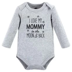 Hudson Baby Infant Boy Cotton Long-Sleeve Bodysuits, Mom Dad Moon Back