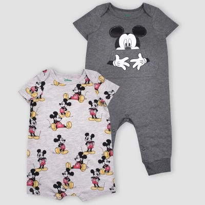 - Baby boys’ Mickey Mouse rompers make cute additions to his wardrobe