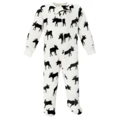 Update your baby’s everyday outfits with this 2-Pack Sleepy Safari Zip Romper from Cloud Island™. This pack includes two long-sleeve rompers, one in soft green and another in white with a playful blue, brown and green safari animal print. Made from soft and breathable cotton fabric with banded cuff details, these rompers are sure to keep your little one comfy throughout the day. The convenient full-length zip closures allow for easy dressing and diaper changing, while the safety tabs help protect their chin from scratches.