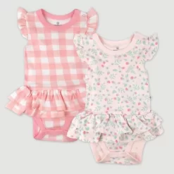 Honest Baby 2pk Ruffle Strawberry Patch Bodysuit Dress – Pink
