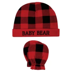 Hudson Baby Unisex Baby Cotton Cap And Scratch Mitten Set, Buffalo Plaid Bear, 0-6 Months