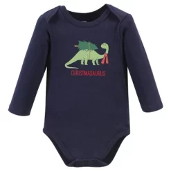 Hudson Baby Unisex Baby Cotton Long-Sleeve Bodysuits, Christmasaurus
