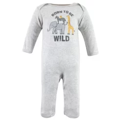 Hudson Baby Unisex Baby Cotton Coveralls, Baby Bear Gray Black