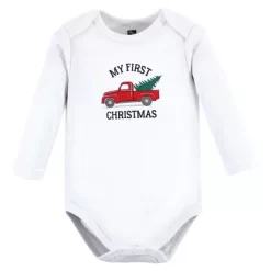 Hudson Baby Unisex Baby Cotton Long-Sleeve Bodysuits, Christmas Tree