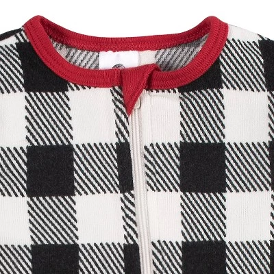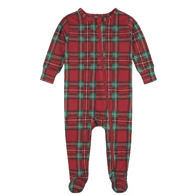 Nothing says the holidays are here like matching family pajamas! These snug, footed baby pajamas are comfortably cozy and perfect for cooler fall and winter nights. Featuring a black and white checkered pattern with red trim, they are part of a matching Christmas pajamas for the whole family. A full length zipper makes them easy to put on and take off, while a neckline zipper protector guards against accidental pinching. Super soft fabric helps your baby boy or baby girl sleep soundly, and easy machine wash and dry keeps them clean all season long. Our essentials have been independently certified with STANDARD 100 by OEKO-TEX® so that you don’t have to worry about harmful substances in your baby’s wardrobe. This pack contains one pair of baby footed pajamas.