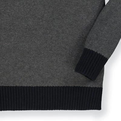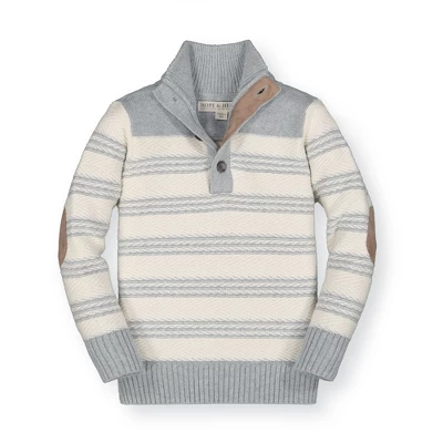 Our mock neck sweater in soft organic cotton lends an instantly polished look to your little guy. Features contrast piecing, faux suede elbow patches, and a faux suede button placket. Rib trim at the collar, cuffs, and hem. Looks even more dapper paired with one of our organic cotton button downs!
