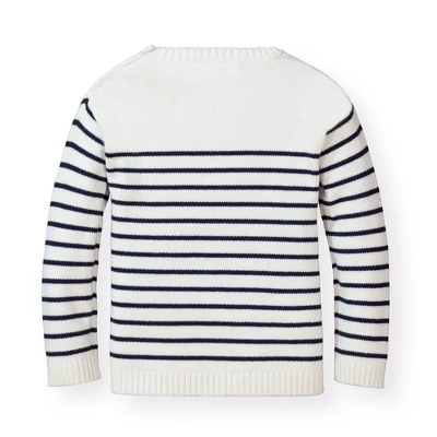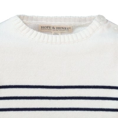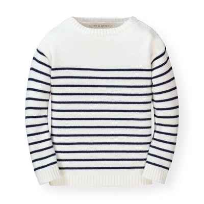 Nothing says classic prep like a French-inspired Breton stripe sweater! Made from soft organic cotton, she might never want to take this crewneck off. Features buttons at the shoulder for that special touch.