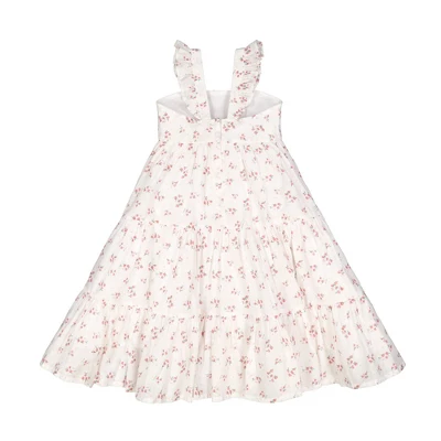 Our pretty floral tiered dress cut from lightweight cotton will give her the ultimate summer twirl factor. Features petite ruffled straps, tiered skirt layers, and a cute v-back with zipper closure.