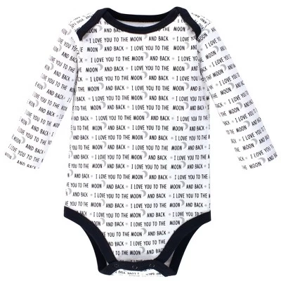 Hudson Baby long-sleeve bodysuits are an essential part of baby’s wardrobe. Our bodysuits feature adorable prints, embroideries, stripes and solids and provide a comfortable base layer that’s great for pairing with pants, shorts, or even wearing under outfits. Our bodysuits are comfortable and cozy for all-day, everyday wear for your little one. Hudson Baby Cotton Long-Sleeve Bodysuits 7pk, Moon And Back is a great baby essentials set for your little one.