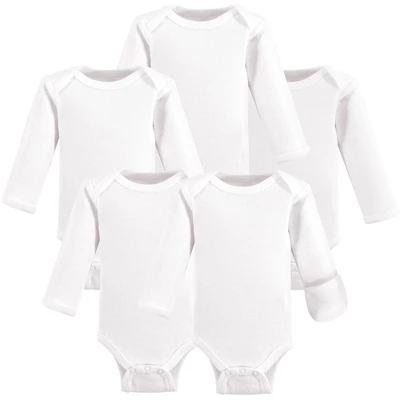Hudson Baby Cotton Preemie Long-Sleeve Bodysuits 5pk, White, Preemie