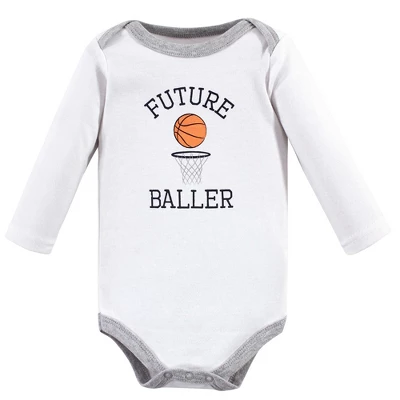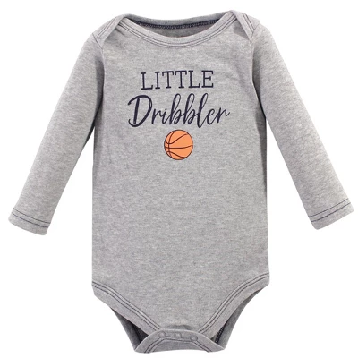 Hudson Baby long-sleeve bodysuits are an essential part of baby’s wardrobe. Our bodysuits feature adorable prints, embroideries, stripes and solids and provide a comfortable base layer that’s great for pairing with pants, shorts, or even wearing under outfits. Our bodysuits are comfortable and cozy for all-day, everyday wear for your little one. Hudson Baby Infant Boy Cotton Long-Sleeve Bodysuits 5pk, Basketball is a great baby essentials set for your little one.