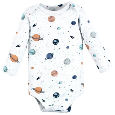 Hudson baby long-sleeve bodysuits are an essential part of baby’s wardrobe. Our bodysuits feature adorable prints, embroideries, stripes and solids and provide a comfortable base layer that’s great for pairing with pants, shorts, or even wearing under outfits. Our bodysuits are comfortable and cozy for all-day, everyday wear for your little one.