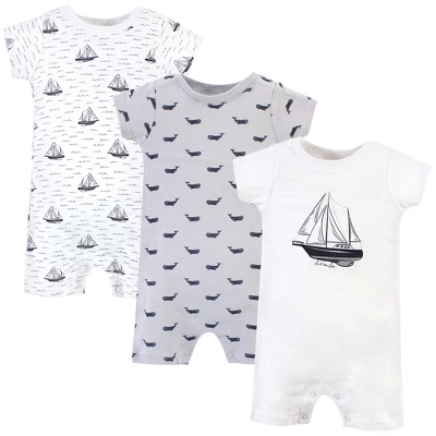 Hudson Baby rompers are an essential part of baby’s wardrobe. Our cotton rompers feature adorable prints, embroideries, stripes and solids and are comfortable one-piece clothing for your little one. Our rompers are comfortable and cozy for all-day, everyday wear and great for warmer temperatures. Hudson Baby Infant Boy Cotton Rompers 3pk, Sail The Sea is a great baby essentials set for your little one.