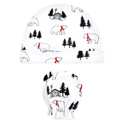 Hudson Baby cotton cap and scratch mitten set is the perfect set for your newborn. Our caps and mittens will help your little one stay warm and scratch free! Scratch mittens have elastic around the wrist so they stay snug, but not too tight. Both caps and mittens are made to be gentle on baby’s skin with 100% super soft cotton. Fits ages 0-6 months.