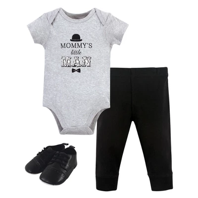 Little Treasure bodysuit, pant, and shoes are an adorable, fashionable outfit to dress your baby for a day out. Your little one will be the most stylish, comfortable baby in the neighborhood with our bodysuit and pant and matching pair of shoes. Little Treasure Baby Boy Cotton Bodysuit, Pant and Shoe 3pc Set, Mommys Man is a great baby essentials set for your little one.