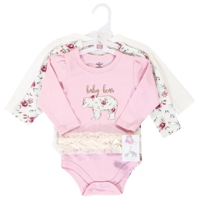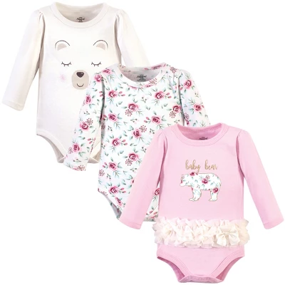 Little Treasure bodysuits are an essential part of baby’s wardrobe. Our bodysuits feature adorable prints, embroideries, stripes and solids and provide a comfortable base layer that’s great for pairing with pants, shorts, or even wearing under outfits. Our bodysuits are comfortable and cozy for all-day, everyday wear for your little one. Little Treasure Baby Girl Cotton Long-Sleeve Bodysuits 3pk, Floral Baby Bear is a great baby essentials set for your little one.