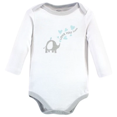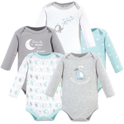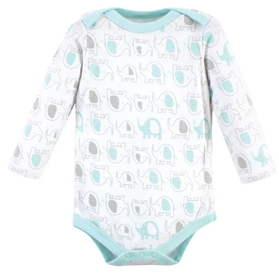 Luvable Friends long-sleeve bodysuits are an essential part of baby’s wardrobe. Our bodysuits feature adorable prints, embroideries, stripes and solids and provide a comfortable base layer that’s great for pairing with pants, shorts, or even wearing under outfits. Our bodysuits are comfortable and cozy for all-day, everyday wear for your little one. Luvable Friends Baby Boy Cotton Long-Sleeve Bodysuits 5pk, Boy Basic Elephant is a great baby essentials set for your little one.