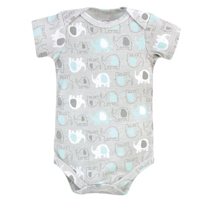 Luvable Friends bodysuits are an essential part of baby’s wardrobe. Our bodysuits feature adorable prints, embroideries, stripes and solids and provide a comfortable base layer that’s great for pairing with pants, shorts, or even wearing under outfits. Our bodysuits are comfortable and cozy for all-day, everyday wear for your little one. Luvable Friends Cotton Bodysuits 5pk, Unisex Basic Elephant is a great baby essentials set for your little one.