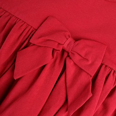 Made from soft and stretchy knit fabric, this dress combines comfort and style effortlessly. With its long sleeves and twirl-worthy skirt, this dress is perfect for both casual outings and special occasions, ensuring your little one looks adorable and feels free to move and dance to her heart’s content.