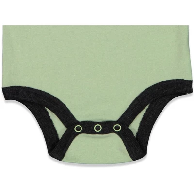 Welcome to the adventure of a lifetime in a galaxy far, far away! Wearing this Star Wars Mandalorian Short Sleeve Bodysuit & Long Sleeve Graphic T-Shirt & Pants, your kid is ready to journey through the Star Wars universe with favorite characters like the Mandalorian Bounty Hunter Din Djarin and “The Child” Grogu. The Force will always be strong with your little one in this 4 piece mix n’ match clothing set: short sleeve bodysuit, graphic tee shirt, and pants featuring Grogu, who looks like an adorable Baby Yoda.