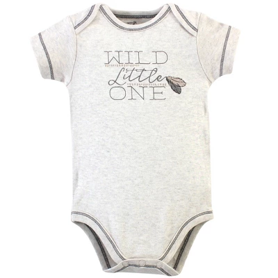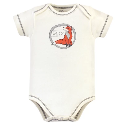 Touched by Nature offers soft organic cotton clothing for the gentlest touch on sensitive and delicate baby skin. Our organic bodysuits feature adorable prints, embroideries, stripes and solids and provide a comfortable base layer that’s great for pairing with pants, shorts, or even wearing under outfits. Our bodysuits are comfortable and cozy for all-day, everyday wear for your little one. Our bodysuits are an essential part of baby’s wardrobe. Touched by Nature Baby Boy Organic Cotton Bodysuits 5pk, Boho Fox is a great baby essentials set for your little one.
