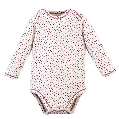 Touched by Nature offers soft organic cotton clothing for the gentlest touch on sensitive and delicate baby skin. Our organic bodysuits feature adorable prints, embroideries, stripes and solids and provide a comfortable base layer that’s great for pairing with pants, shorts, or even wearing under outfits. Our bodysuits are comfortable and cozy for all-day, everyday wear for your little one. Our bodysuits are an essential part of baby’s wardrobe. Touched by Nature Baby Girl Organic Cotton Long-Sleeve Bodysuits 5pk, Cherry Blossom is a great baby essentials set for your little one.