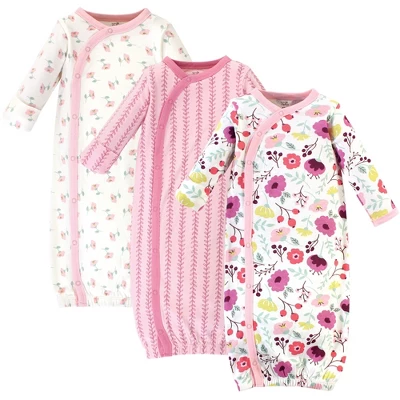 Touched by Nature organic cotton Side-Closure Snap gowns feature playful patterns for sweet dreams. Our organic fabric is super-soft and gentle on baby’s skin, making sleep time cozy and comfortable. The snaps make for easy on and easy off, the elastic band at the bottom and a lap neck make dressing and diaper changes a breeze. Our preemie gowns are suitable for preemies and newborns from 6 to 9 pounds. Our 0-6 month gowns run a bit larger so they can last you up until your baby turns 6 months old. Our gowns are made of 100% cotton, so some shrinking should be expected. Touched by Nature Baby Girl Organic Cotton Side-Closure Snap Long-Sleeve Gowns 3pk, Botanical is a great baby essentials set for your little one.