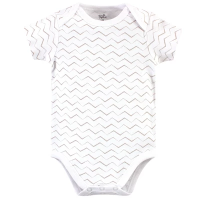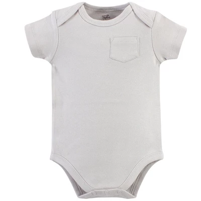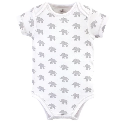 Touched by Nature offers soft organic cotton clothing for the gentlest touch on sensitive and delicate baby skin. Our organic bodysuits feature adorable prints, embroideries, stripes and solids and provide a comfortable base layer that’s great for pairing with pants, shorts, or even wearing under outfits. Our bodysuits are comfortable and cozy for all-day, everyday wear for your little one. Our bodysuits are an essential part of baby’s wardrobe. Touched by Nature Organic Cotton Bodysuits 5pk, Marching Elephant is a great baby essentials set for your little one.