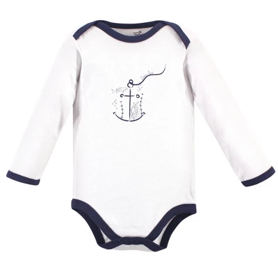 Touched by Nature offers soft organic cotton clothing for the gentlest touch on sensitive and delicate baby skin. Our organic bodysuits feature adorable prints, embroideries, stripes and solids and provide a comfortable base layer that’s great for pairing with pants, shorts, or even wearing under outfits. Our bodysuits are comfortable and cozy for all-day, everyday wear for your little one. Our bodysuits are an essential part of baby’s wardrobe. Touched by Nature Organic Cotton Long-Sleeve Bodysuits 5pk, Blue Whale is a great baby essentials set for your little one.